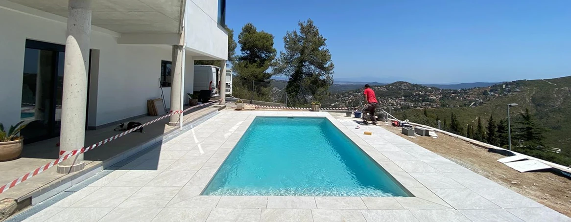 Piscina de agua salada (7x3m): Se construyó una piscina de diseño contemporáneo, revestida con gresite blanco veteado que aporta un acabado elegante y luminoso. El sistema de electrólisis salina garantiza un mantenimiento más sostenible y respetuoso con el medio ambiente, además de ofrecer una experiencia de baño más agradable.